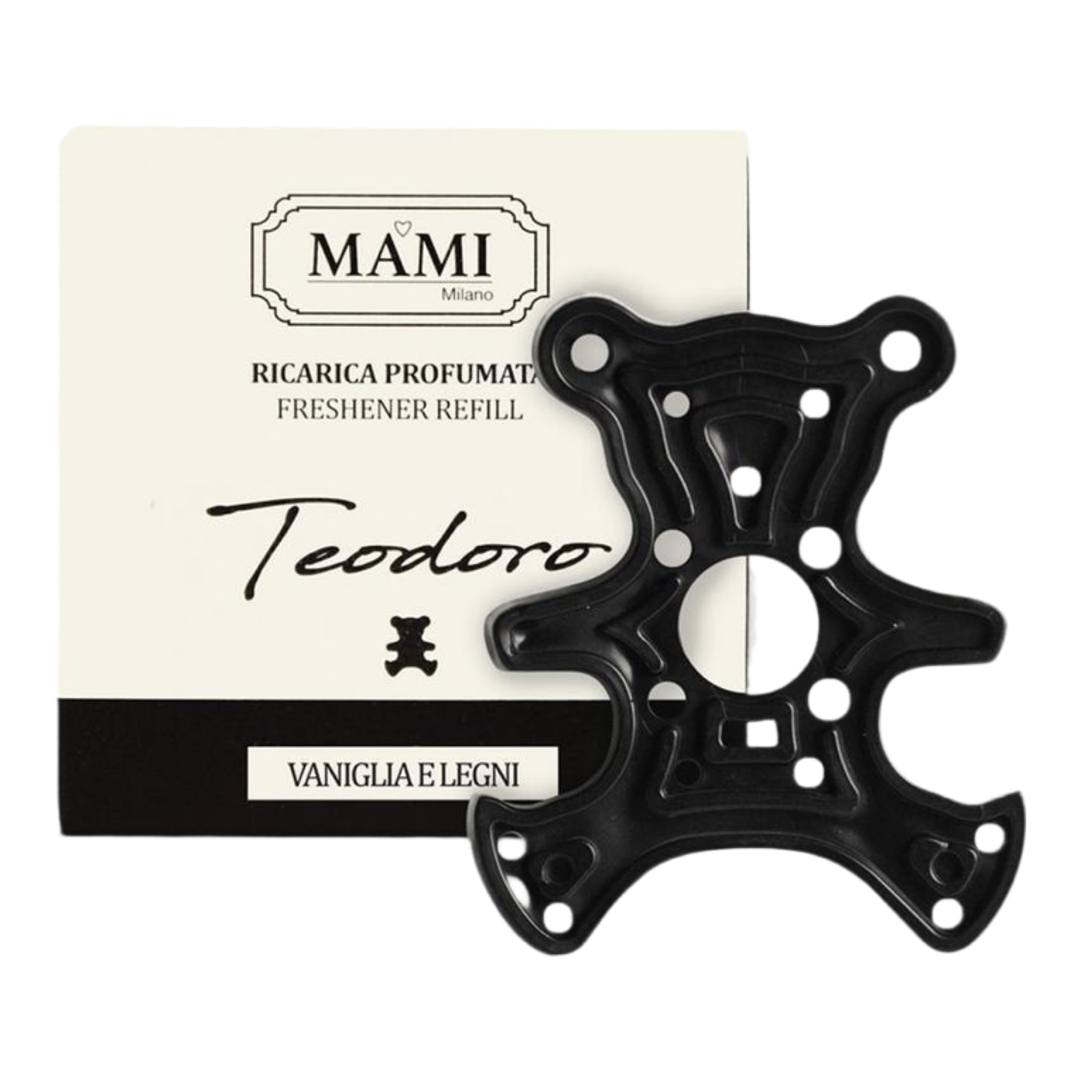 MAMI MILANO Teodoro – це змінний картридж, розроблений для забезпечення неперервної ароматизації салону автомобіля в системі Teodoro, виконаній у формі ведмедика. Цей рефіл поєднує високоякісну італійську естетику та функціональність, забезпечуючи контрольоване та тривале вивільнення аромату. • Універсальність: Картридж сумісний з усіма тримачами серії Teodoro, дозволяючи оперативно змінювати аромати відповідно до сезону або особистих уподобань. • Ефективність: Спеціальна полімерна структура забезпечує постійну та рівномірну дифузію аромату без різких перепадів інтенсивності. • Якість та Безпека: Виробництво здійснюється в Італії. Матеріал є нетоксичним та безпечним для використання в закритому просторі автомобіля.