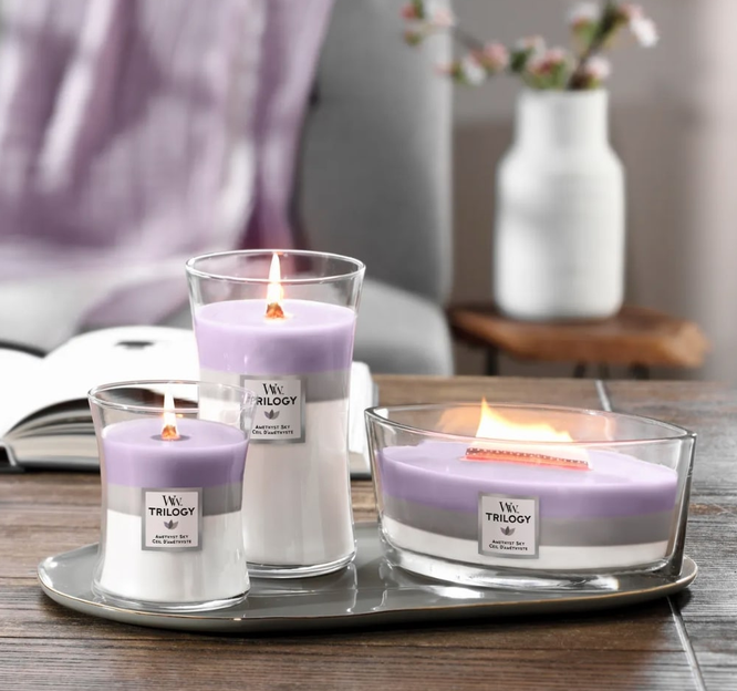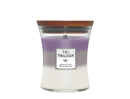 Medium trilogy candle Amethyst skyАроматична свічка з ароматом бузини, сандалу та кедру