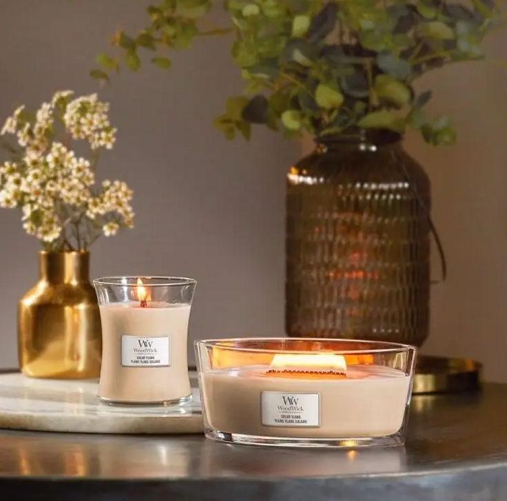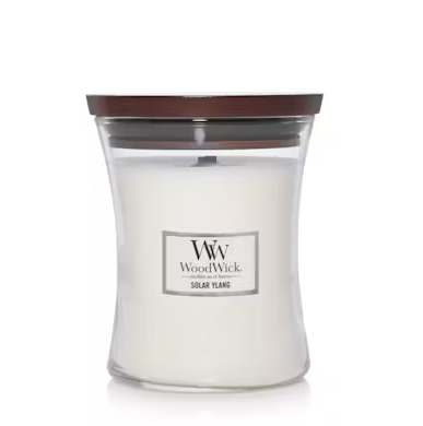 WOODWICK Candle в ароматі Solar Ylang – це свічка з ароматом солодкого букету з жасміну, іланг-іланга та туберози, яка сяє нотами мускуса та бергамоту. Об’єм свічки – 275 g. Ноти аромату: Верхня: кардамон, геліотроп, бергамот. Середня: жасмін, тубероза, іланг-іланг, лабданум. В основі: бензоін, боби тонка, мускус, сандалове дерево. Характеристики: Дерев’яний запатентований гніт Скляний свічник Кришка для правильного гасіння Зроблено в США Ароматична свічка WoodWick дарує мультисенсорні відчуття. Завдяки натуральному дерев’яному гноту створюється заспокійливий звук каміна, а оселя наповнюється ароматом та затишком.