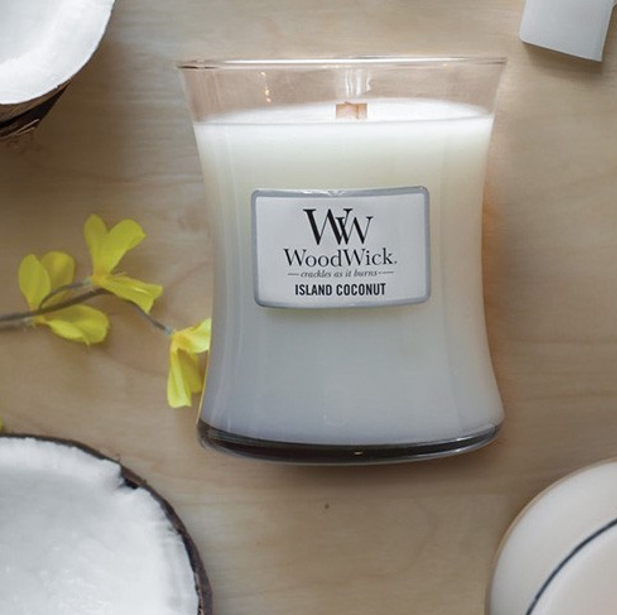WOODWICK Candle в ароматі Island Coconut – це свічка ароматом соковитого ананасу, який змішаний з вершковим кокосовим горіхом. Дане поєднання створює ідеальний тропічний аромат. Об’єм свічки – 85 g. Ноти аромату: Верхня: ананас. Середня: банан, кокос. В основі: мускус, фруктові відтінки, ваніль, кремові відтінки. Характеристики свічки: Дерев’яний запатентований гніт Скляний свічник Кришка для правильного гасіння Зроблено в США Ароматична свічка WoodWick дарує мультисенсорні відчуття. Завдяки натуральному дерев’яному гноту створюється заспокійливий звук каміна, а оселя наповнюється ароматом та затишком.