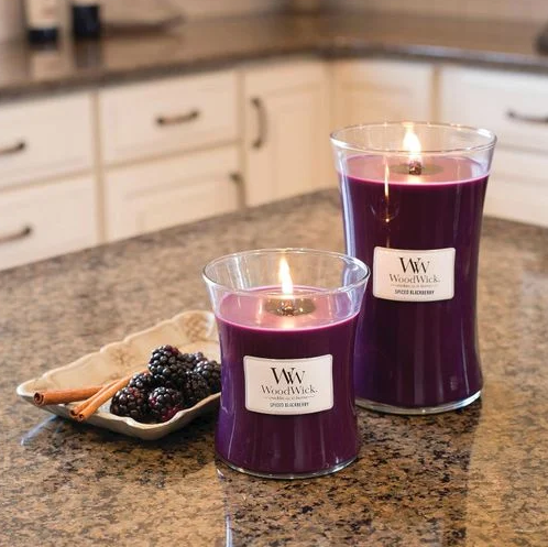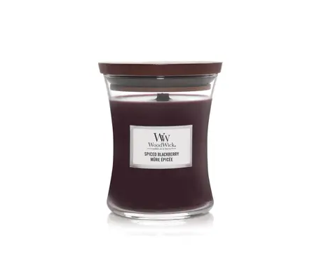 WOODWICK Candle в ароматі Spiced Blackberry – це свічка дивовижно глибоким ароматом ожини і кориці, які потопають в ванільному даниші. Об’єм свічки – 85 g. Ноти аромату: Верхня: терпкі ягоди, яблучна смородина, персик, цедра апельсина. Середня: кокос, фрукти, кориця, гвоздика, карамель, польові трави. В основі: ванільний цукор, боби тонка, деревина. Характеристики свічки: Дерев’яний запатентований гніт Скляний свічник Кришка для правильного гасіння Зроблено в США Ароматична свічка WoodWick дарує мультисенсорні відчуття. Завдяки натуральному дерев’яному гноту створюється заспокійливий звук каміна, а оселя наповнюється ароматом та затишком.