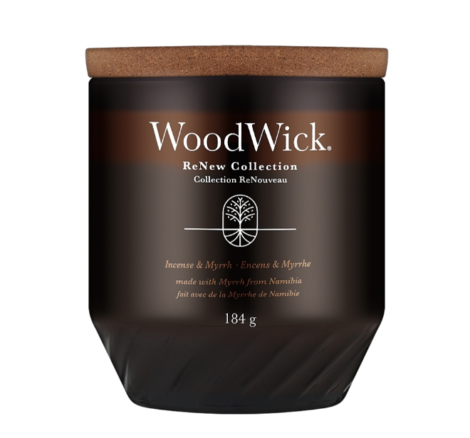 WOODWICK Candle ReNew в ароматі Incense & Myrrh – це свічка з глибоким ароматним поєднанням мирри з Намібії, солодкої деревини та відтінку апельсинового аромату. ReNew – це екологічна колекція від WoodWick®: Для більшого затишку в гармонії з природою. Розмір свічки: Medium — 55 годин чарівного аромату з потріскуванням та 184 г натурального воску. Ноти аромату: Верхні: аніс, сосна, кокос, мирра, кардамон Середні: конвалія, фіалка, неролі, троянда, ірис В основі: сандал, кедр, ваніль, пачулі, ладан Інгредієнти: Рослинна суміш соєвого та кокосового воску без барвників. Ефірні олії отримуються з рослин природним шляхом. Аромати на біологічній основі — перероблені матеріали та ефірні олії. Свічник з переробленого скла та коркова кришка.