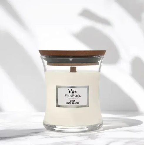 WOODWICK Candle в ароматі Linen – це свічка з заспокійливим ароматом чистого сушіння білизни на м’якому літньому вітерці. Об’єм свічки – 85 g. Ноти аромату: Верхня: цедра лимона, свіжовичавлений апельсин, зелене яблуко. Середня: конвалія, дика фрезія, солодкий жасмин, іланг-іланг. В основі: кедр, сандал, пачулі, дубовий мох, свіжий мускус. Характеристики свічки: Дерев’яний запатентований гніт Скляний свічник Кришка для правильного гасіння Зроблено в США Ароматична свічка WoodWick дарує мультисенсорні відчуття. Завдяки натуральному дерев’яному гноту створюється заспокійливий звук каміна, а оселя наповнюється ароматом та затишком.