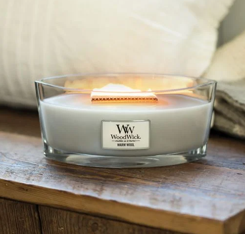 WOODWICK Candle в ароматі Warm Wool – це свічка з ароматом теплої шерсті та польових квітів наче запрошує зробити глибокий вдих і розслабитися. Ноти нагадують свіжовипрану білизну. Об’єм свічки – 453 g. Ноти аромату: Верхня: солодкий апельсин, яблуко. Середня: лляний акорд, лаванда, жасмин, бузок, троянда, лілія. В основі: сандал, пачулі, янтар, ваніль, мускус. Характеристики свічки: Дерев’яний запатентований гніт Скляний свічник Кришка для правильного гасіння Зроблено в США Ароматична свічка WoodWick дарує мультисенсорні відчуття. Завдяки натуральному дерев’яному гноту створюється заспокійливий звук каміна, а оселя наповнюється ароматом та затишком.