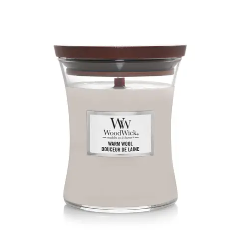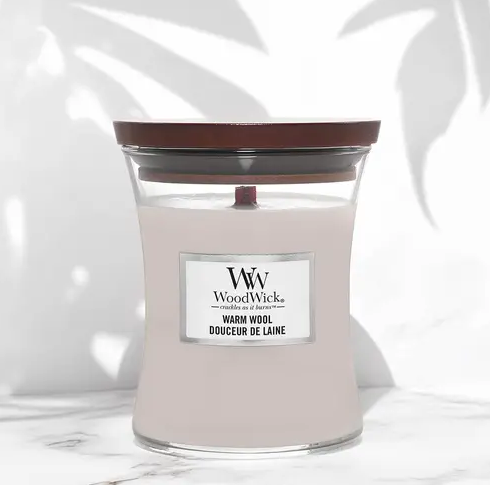 WOODWICK Candle в ароматі Warm Wool – це свічка з ароматом теплої шерсті та польових квітів наче запрошує зробити глибокий вдих і розслабитися. Ноти нагадують свіжовипрану білизну.