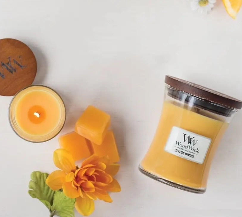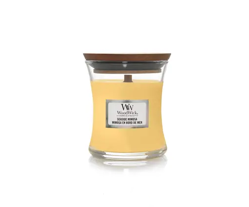 WOODWICK Candle в ароматі Seaside Mimosa – це свічка з ароматом суміші соковитого цитрусового і ігристого винограду. Аромат такий же освіжаючий, як холодний напій на літньому березі. Об’єм свічки – 85 g. Ноти аромату: Верхня: соковитий апельсин, свіжий лимон. Середня: шампанське, виноград, солодкий жасмин. В основі: бурштин, ваніль, мускус. Характеристики: Дерев’яний запатентований гніт Скляний свічник Кришка для правильного гасіння Зроблено в США Ароматична свічка WoodWick дарує мультисенсорні відчуття. Завдяки натуральному дерев’яному гноту створюється заспокійливий звук каміна, а оселя наповнюється ароматом та затишком.