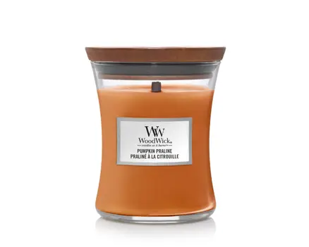 WOODWICK Candle в ароматі Pumpkin Praline – це свічка з ніжним ароматом гарбуза в поєднанні з кленом та спеціями, імбиром та мускатним горіхом. Об’єм свічки – 275 g. Ноти аромату: Верхні: гарбуз, горіхи пекан, аніс, мускатний горіх Середні: гарбузове пюре, кориця, імбир В основі: згущене молоко, клен, ваніль Характеристики свічки: Дерев’яний запатентований гніт Скляний свічник Кришка для правильного гасіння Зроблено в США Ароматична свічка WoodWick дарує мультисенсорні відчуття. Завдяки натуральному дерев’яному гноту створюється заспокійливий звук каміна, а оселя наповнюється ароматом та затишком.