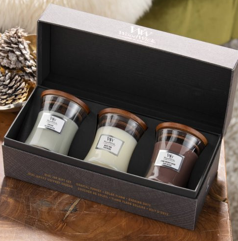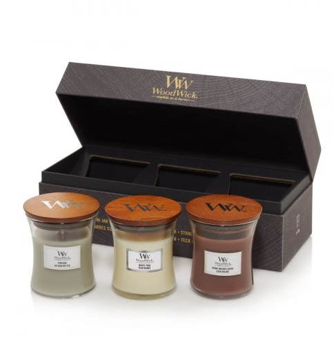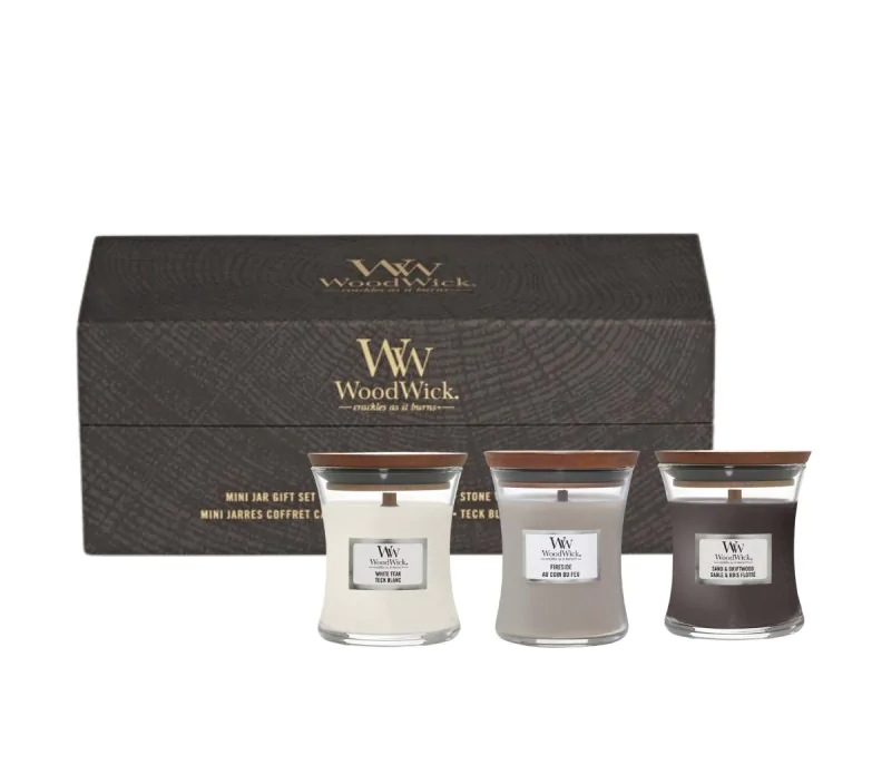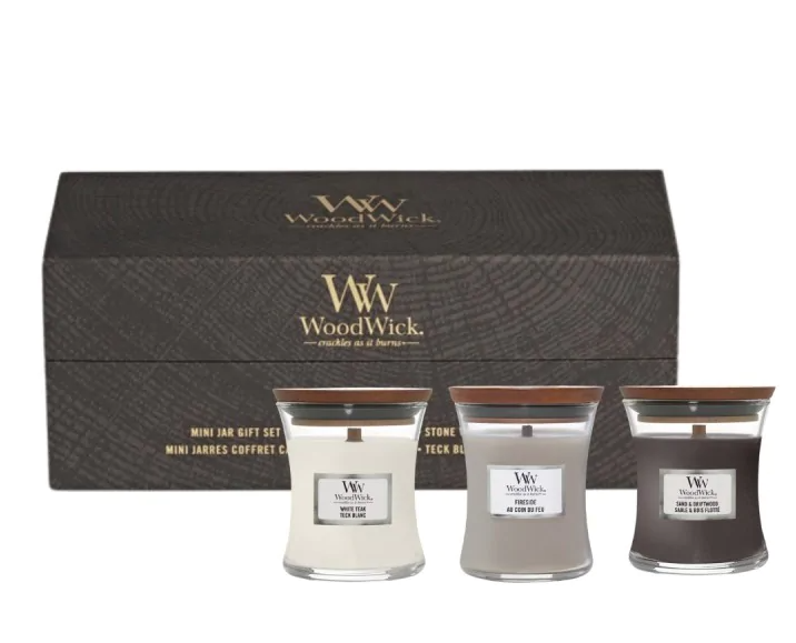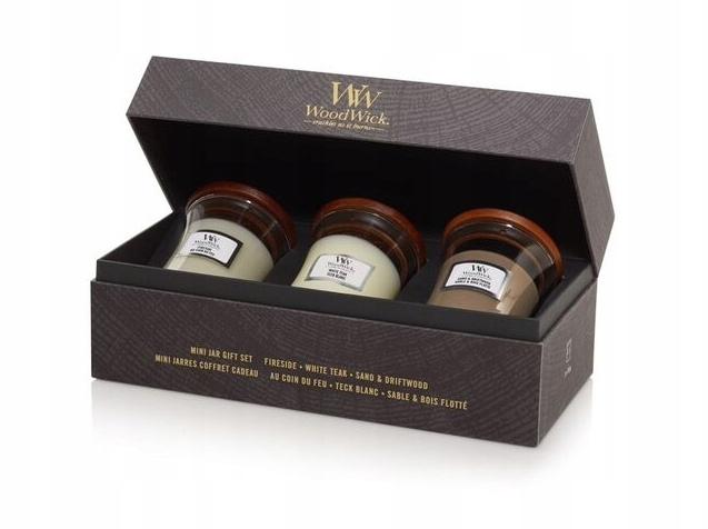 Набір cвічок Woodwick Mini включає три свічки в об’ємі по 85g різних ароматів: Fireside — теплий аромат копченого дерева, бергамота та яблучної шкірки Sand and driftwood — гострий озон, бергамот та деревина White teak — тонкий деревний і свіжий аромат сандалу, ялинки з нотами дуба, моху та кедра. Характеристики: Дерев’яний запатентований гніт Скляний свічник Кришка для правильного гасіння Зроблено в США Ароматична свічка WoodWick дарує мультисенсорні відчуття. Завдяки натуральному дерев’яному гноту створюється заспокійливий звук каміна, а оселя наповнюється ароматом та затишком.