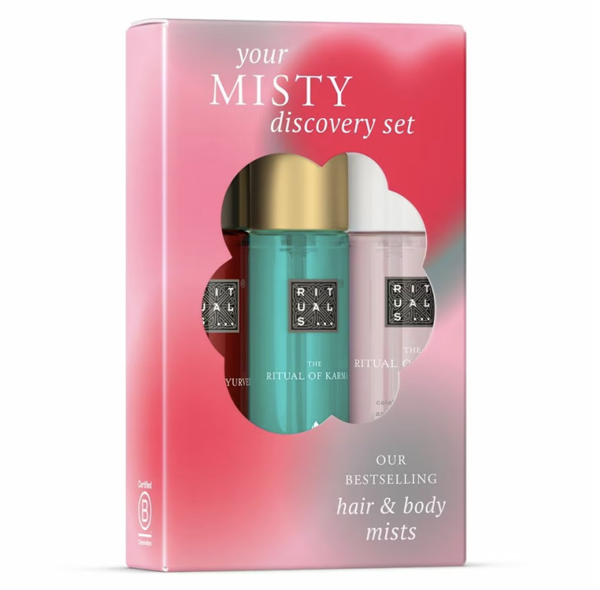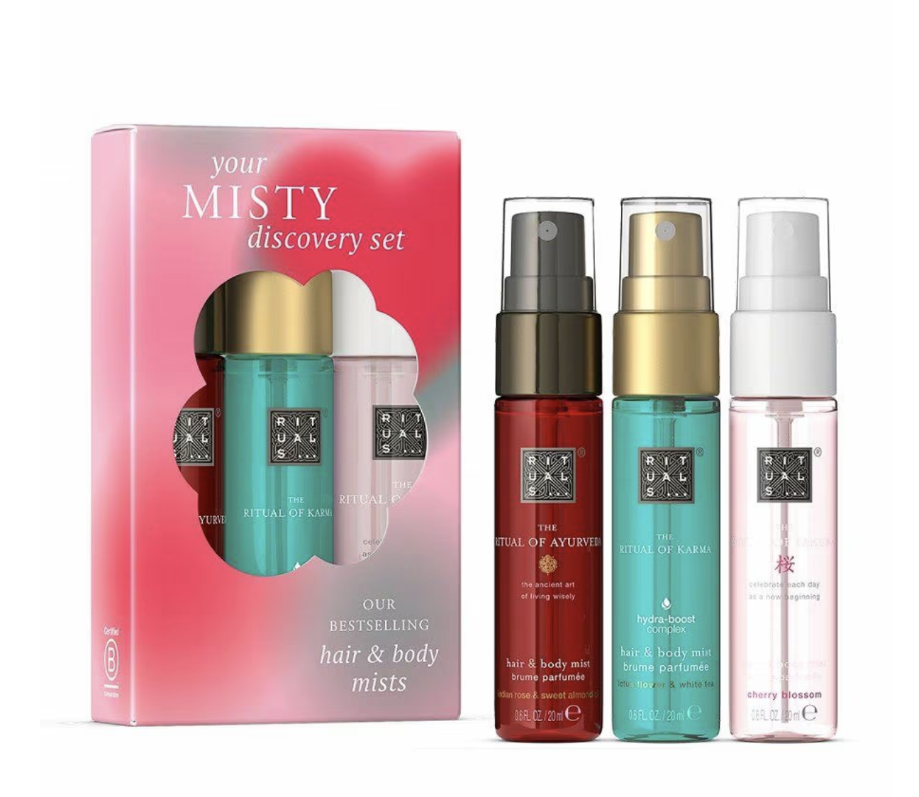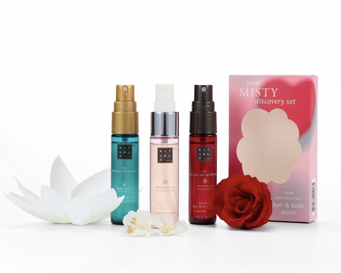 Відкрийте для себе Rituals Your Misty Discovery Set - набір із трьох популярних містів для волосся та тіла, що дарують миттєву свіжість і відчуття доглянутості протягом дня.