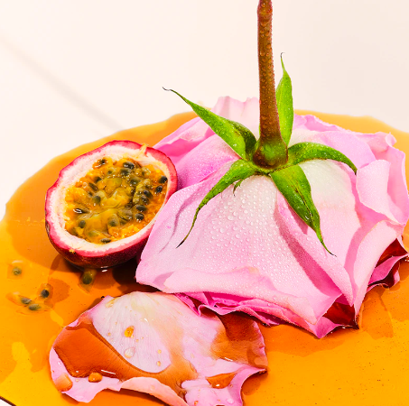 Вайб: яскравий, тропічно-солодкий і трохи грайливий. Маракуйя додає соковитої екзотичної кислинки, троянда — ніжної квіткової елегантності, а цукор і мед створюють солодкий, теплий десертний шлейф. Рожевий перець додає легкої пікантності, а амбра — глибини й чуттєвості. Аромат звучить як сонячний коктейль на заході дня — теплий, жіночний і привабливо солодкий.