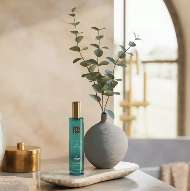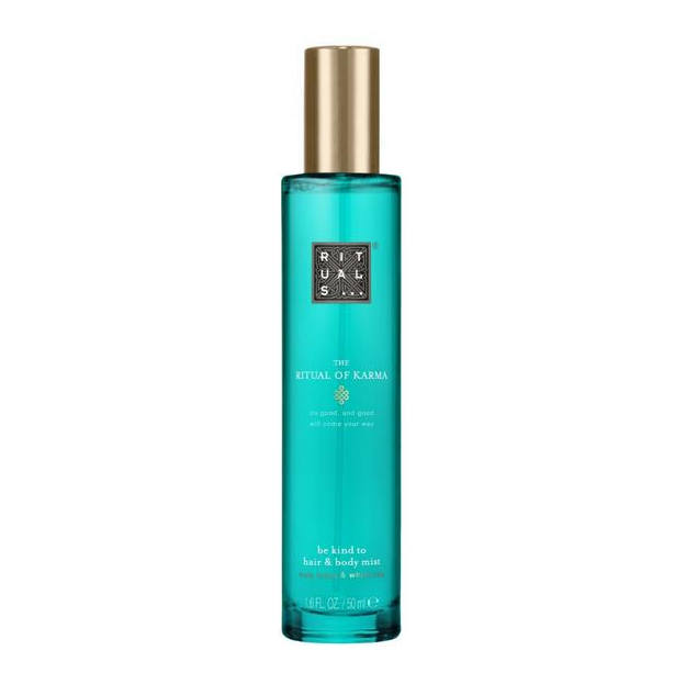 Спрей для тіла і волосся бренда Rituals — це чудовий засіб, здатний не тільки подбати про шкіру й освіжити її у спекотний літній день, але і забезпечити розкішний аромат, який радуватиме вас довгий час. Б’юті-продукт має маленький розпилювач, за допомогою якого створює гарний ароматичний туман, випромінюючи позитивні емоції. Ця формула без спирту ідеально підходить для чутливої шкіри та не залишає слідів на одязі. Не обтяжує та не склеює пасма. Має економний розхід та представлений у стильному флаконі. Ноти аромату:лотос та білий чай