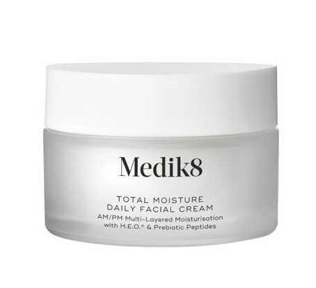 Kрем для глибокого зволоження шкіри MEDIK8 total moisture daily миттєвої діїі. Отримайте глибоко зволожену та миттєво підтягнуту шкіру з щоденним багатофункціональним кремом Medik8. Використовуйте вранці або ввечері (можна два рази на день) щоб мати пружну, здорову шкіру, що сяє. Ключові інгрідієнти: пребіотик-пептид, мультимолекулярна гіалуронова кислота, кераміди, ліпіди, технологія H.E.O.Ⓡ. Клінічно підтверджено, що зволожуючий крем для обличчя Total Moisture Daily Facial Cream забезпечує миттєве та тривале зволоження навіть у найглибших шарах шкіри, забезпечує підтримку захисного бар’єра та балансу мікробіому вашої шкіри. Клінічно підтверджено, що цей засіб миттєво покращує вигляд вашої шкіри, роблячи її м’якою. Доведено, що цей крем для зволоження шкіри обличчя підтримує оптимальний стан шкіри, забезпечуючи миттєве здорове сяйво. Формула не забиває пори та добре лягає під сонцезахисний крем та макіяж, подовжуючи його стійкість.