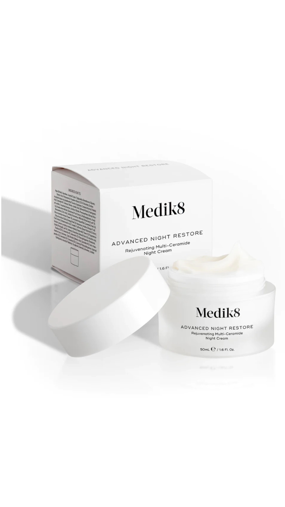 Омолоджувальний мультикерамідний нічний крем MEDIK8 advanced night restore надає глибоке живлення та помітне зміцнення шкіри. Формула створена для підтримки шкіри під час використання сироваток на основі вітаміну А. Вона забезпечує глибоку гідратацію, живлення та комфорт шкіри протягом всієї ночі. Результати: Advanced Night Restorе мінімізує ознаки старіння шкіри, дарує ніжність, пружність та заряд відновлювальної енергії. Ключові інгрідієнти: комплекс керамідів, відновлювальні пептиди, екстракти ягід саскатун та плодів пітайї. Фірмовий комплекс Midnight Repair Complex™ використовує антиоксидантний потенціал ягід саскатун, плодів пітайї і відновлювальних пептидів, які стимулюють природний цикл регенерації й відновлення клітин протягом ночі. Оптимальне співвідношення керамідів допомагає гідратувати й наповнити шкіру, а також відновити природні захисні механізми шкіри. Потужні антиоксиданти протидіють пошкодженню, яке спричинили вільні радикали протягом дня. Живильні кераміди 1 і 3 поєднуються з натуральними ліпідами шкіри й відновлюють шкірний бар’єр. Це покращує природний захист шкіри від старіння. Живильний насичений нічний крем швидко поглинається і діє в клітинах у найбільш активний період добового циклу шкіри – вночі.