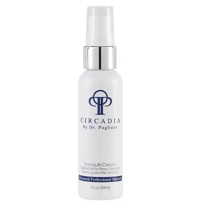 CIRCADIA tranquili cream – це заспокійливий крем для шкіри обличчя що створений спеціально для чутливої шкіри або людей, які страждають від розацеа. Крем містить рослинні та морські екстракти, які зменшують свербіж і почервоніння, сприяють зменшенню запалення і подразнення. Пептиди та комплекс ліпідів живлять та сприяють відновленню цілісності захисного барʼєра шкіри. Крем миттєво пом’якшує шкіру та усуває дискомфорт, зволожує. Показання за якими можна рекомендувати крем: почервоніння, подразнення, лущення, розширені капіляри, розацеа, чутлива шкіра, порушення цілісності захисного барʼєра, зневоднення. Об’єм крему – 59 ml. Активні компоненти крему: Гель алое вера – Сприяє загоєнню ран, стимулює ріст фібробластів, ангіогенез і реепітелізацію, а також зменшує запалення та покращує синтез колагену. Гліцерин – Компонент, необхідний для нормального функціонування захисного барʼєру шкіри. Діє як сигнальна молекула та сприяє нормальному чотирьохетапному процесу дозрівання клітин епідермісу. Пантенол – природний зволожувач дерми, допомагає клітинам утримувати високий рівень вологи тривалий час, стабілізує та посилює бар’єрну функцію шкіри, захищає шкіру від дії вільних радикалів, заспокоює та пом’якшує шкіру. Stimu-Tex (екстракт олії ши та арганова олія) – Сприяє відновленню епідермального бар’єру і зниженню трансепідермальної втрати води. SepiCalm VG (Sodium Palmitoyl Proline та екстракт квіток білої лілії) – це запатентований компонент, який пригнічує запальну пігментацію, заспокоює чутливу і подразнену шкіру, а також зменшує запалення. Усуває дискомфорт, печіння та поколювання. Компонент є модулятором запалення, освітлює шкіру та може ефективно допомогти чутливій і пошкодженій шкірі боротися з хімічними або сонячними пошкодженнями, а також полегшити та зменшити дискомфортні відчуття шкіри (наприклад: негативне відчуття жару та болю). Symsitive 1609 (4-T-Butylcyclohexanol) – Заспокоює чутливу шкіру, миттєво усуває свербіж або поколювання, а також покращує антиоксидантний захист і зменшує подразнення. Це інгредієнт нової генерації для чутливої шкіри. Це заспокійлива молекула, особливою властивістю якої є миттєве зменшення відчуття поколювання та печіння. Відповідно до вражаючих цифр виробника, він може зменшити поколювання до 78% і відчуття печіння до 80% вже через 3 хвилини. Він інгібує теплові рецептори шкіри TRPV1, миттєво полегшуючи печіння та поколювання. Заспокоює шкіру, збільшуючи поріг її чутливості. Компонент працює на клітинному рівні, перехоплюючи сигнали, спричинені подразненням, перш ніж вони досягнуть нейрорецепторів. На додаток, компонент був спеціально вивчений на здатність ефективно зменшувати подразнення шкіри, спричинене голінням. Екстракт кореня орхідеї – має антиоксидантні та зволожувальні властивості. Нормалізує рівень вологи у шкірі. Екстракт стовбурових клітин Marrubium, Tocopheryl Acetate та Tocopherol – надає антиоксидантний захист. Delisense (Acetyl Нехарерtide-49) – Регулює рецептор PAR-2, зменшуючи дискомфорт і відновлюючи цілісність захисного бар’єра. Інгредієнт ефективно зволожує, відлущує ороговілі клітини, розгладжує і пом’якшує суху шкіру.