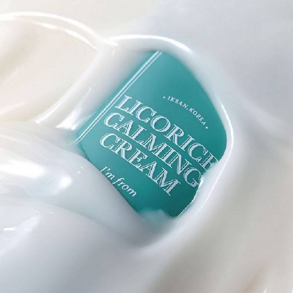 Заспокійливий крем I’m From Licorice Calming Cream містить 58% екзосом лакриці. Ефективно заспокоює подразнену та проблемну шкіру, проникаючи глибоко в шкіру, залишаючи її зволоженою протягом 24 годин. Заспокійливий крем надає сяйво, зменшує почервоніння та пігментні плями. Високоефективний для заспокоєння чутливої шкіри та захисту епідермального бар`єра. Особливості товару: Заспокоює чутливу та проблемну шкіру. Екзосоми лакриці – ключовий інгредієнт, який є високоефективним антизапальним та антиалергічним компонентом, який допомагає заспокоїти подразнену шкіру та захистити бар’єр від подальших пошкоджень. Екзосоми лакриці мають сертифікований ефект і зменшують почервоніння. Забезпечує глибоке зволоження шкіри. Клінічно протестовано та доведено, що крем заспокоює роздратовану, чутливу шкіру, збільшує вміст вологи в шкірі. Засіб не комедогенний та підходить для чутливої шкіри.