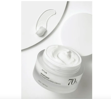 ANUA heartleaf 70% intense calming cream – це інтенсивний бар’єрний крем на основі хауттюйнії, який заспокоює подразнену шкіру, допомагає зменшити почервонінь та чутливість. Крем зміцнює захисні функції епідермісу та забезпечує цілісність ліпідної мантії, відновлює оптимальний гідроліпідний баланс, інтенсивно зволожує, підтримуючи у клітинах оптимальний рівень зволоження. Активні компоненти крему: Ключовий актив крему – 70% екстракту хауттюйнії серцеподібної з яскравими загоювальними і протизапальними властивостями. Вона допомагає зменшити подразнення та осередки запалення, зміцнює імунітет, робить поверхню епідермісу менш чутливою та реактивною. Пантенол – знімає почервоніння і подразнення, має зволожуючу та ранозагоювальну властивість. Аденозин – ефективно бореться зі зморшками, надаючи потужну цитопротекторну дію та захищаючи клітини від окислення, впливає на синтез проколагену 1, відповідального за пружність та тонус шкіри. Цераміди – підвищують захисні функції епідермісу, запобігають втраті вологи та допомагають відновити шкіру. Позбавляють сухості та лущення. Лецитин – зміцнює клітини та волокна епідермісу, допомагають засвоювати корисні речовини. Підтримує захисний бар’єр шкіри, нейтралізує негативний вплив вільних радикалів, ультрафіолету та інших факторів довкілля. Холестерол – ліпід, що становить частину бар’єрного шару епідермісу, підвищує бар’єрні функції, підтримує зволоженість, запобігає сухості. Крем підходить для сухої, нормальної та чутливої шкіри.