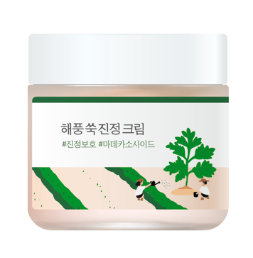 ROUND LAB Mugwort Calming Cream — загоювальний та заспокійливий крем для подразненої, чутливої та схильної до акне шкіри. Має свіжу гелеву текстуру, швидко вбирається та залишає шкіру зволоженою без відчуття липкості. Екстракт морського полину з архіпелагу Геомундо — багатий на вітаміни А, B, бета-каротин. Знімає свербіж, зменшує активність сальних залоз, надає антибактеріальний та заспокійливий ефект. Екстракт листя центелли азіатської, а також мадекассозид та азіатикозид (чисті ізоляти, отримані з центелли) — знижують мікрозапалення, стимулюють синтез колагену, зменшують видимість зморшок, сприяють загоєнню шкіри. Пантенол та алантоїн — ефективно зменшують подразнення шкіри.