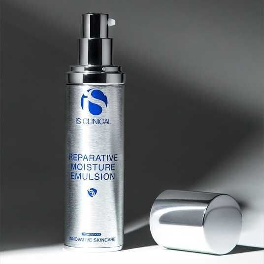 IS CLINICAL reparative moisture emulsion – це інтенсивно омолоджувальна та зволожуюча емульсія, яка містить рослинні інгредієнти фармацевтичного класу обробки, пептиди і потужні антиоксиданти. Це продукт першого покоління з технологією захисту Extremozymes®, яка запобігає пошкодженню ДНК. Окрім цього, емульсія інтенсивно зволожує і наповнює шкіру вологою, відновлює захисний бар’єр, зменшує подразнення, уповільнює процеси старіння та працює з уже наявними віковими змінами. Додатково, засіб готує шкіру до нанесення макіяжу (засіб було розроблено спільно з провідними візажистами). Емульсія підходить для всіх типів шкіри, в тому числі для жирної та чутливої. Показана для зневодненої та запаленої шкіри, з поверхневими та глибокими зморшками. Активні компоненти емульсії: 13% Extremozyme® (Екстремозими) – запатентована комбінація екстремофільних ензимів, яка захищає шкіру від пошкоджень. Клінічно підтверджено, що ця комбінація відновлює протеїни та структуру ДНК. 5% Галуронат натрію (гіалуронова кислота рослинного походження) – компонент для зволоження шкіри, який володіє гідрофільними властивостями. Притягує та утримує молекули води, маса яких у 1800 разів перевищує його власну молекулярну масу. 2,3% Глікозаміноглікани – стабілізують і підтримують здорову структуру колагену, сприяють пружності, еластичності та стійкості шкіри до стресу. Зменшують провисання шкіри. 0,5% Супероксиддисмутаза (SOD) – унікальний натуральний фермент, який безпечно нейтралізує вільні радикали, бореться з клітинними пошкодженнями та фотостарінням. Захищає не лише шкіру, але й себе, що відрізняє його від багатьох неферментних антиоксидантів, які знищуються в процесі боротьби з вільними радикалами. Трипептид міді (біоідентичний фактор росту) – стимулює синтез колагену фібробластами шкіри, збільшує скупчення протеїнів, глікозаміногліканів (у двофазній дузі) і ДНК в місцях дермальних пошкоджень. Сприяє синтезу декоріну – білку, який має здатність регулювати процес збору колагену. Для зволоження та зміцнення захисного бар’єру: сквалан, амінокислоти (acetyl tyrosine, proline), сечовина, пантенол, фосфоліпіди, гідролізовані рослинні протеїни та протеїни сої. Tripeptide-10 Citrulline (Decorinyl) – ремоделюючий пептид, який відновлює “правильний” процес складання колагенових волокон, підвищуючи пружність і еластичність шкіри. Комплекс вітамінів: Tocopherol та Tocopheryl Acetate, Retinyl Palmitate, Ascorbyl Palmitate та Pantothenic Acid.