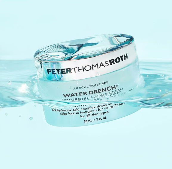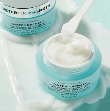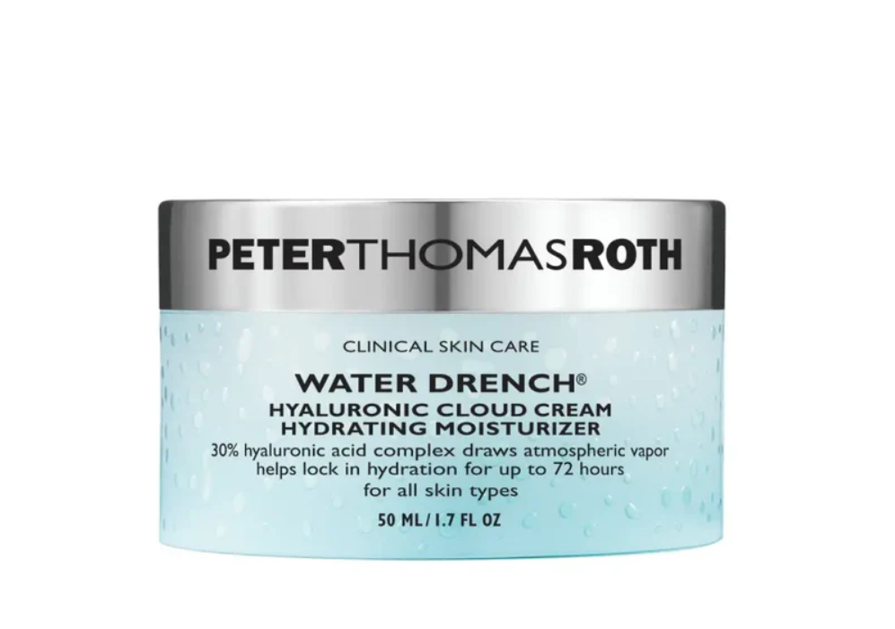 PETER THOMAS water drench hyaluronic cloud cream hydrating moisturizer – це зволожуючий крем на основі 30% гіалуронової кислоти та комплексу Пентавітину®, що є революційним інгредієнтом, який допомагає забезпечити зволоження протягом 72 годин. Крем наповнює шкіру вологою та допомагає утримувати її на різних рівнях шкіри. Засіб помітно зменшує тонкі лінії та зморшки, залишаючи шкіру шовковистою, свіжою та більш молодою на вигляд. Крем не містить олій, спирту та парфумерних віддушок. Крем підходить для всіх типів шкіри, окрім проблемної, схильної до висипань. Активні компоненти: 30% комплексу гіалуронової кислоти – насичує шкіру вологою та попереджає сухість шкіри. Комплекс п’яти керамідів – відновлюють гідроліпідний баланс шкіри, насичують клітини вологою, усувають сухість та лущення. Pentavitin – запатентований комплекс, який допомагає забезпечити зволоження протягом 72 годин. Екстракт чорної бузини – покращує мікроциркуляцію, зміцнює судини і вирівнює тон шкіри. Вітамін Е та екстракт листя оливи – надають антиоксидантний захист.