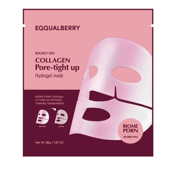Гідрогелева маска для обличчя EQQUALBERRY collagen mask pore tight up створена для звуження пор та миттєвого ліфтінг ефекту. Маска візуально звужує розширені пори, покращує рівень зволоження шкіри, зменшує виділення шкірного себуму, підтримує регенеративні процеси, візуально розгладжує зморшки та має антивіковий ефект. Ніацинамід у формулі надає себорегулюючу дію і візуально звужує розширені пори, одночасно вирівнюючи текстуру шкіри. Пантенол підтримує процеси регенерації шкіри та заспокоює подразнення. Колаген підвищує пружність шкіри, а PDRN та пептидний комплекс борються із заломами шкіри та посилюють антивікові властивості маски. Маска підходить для всіх типів шкіри, в тому числі для зрілої та шкіри з розширеними порами.