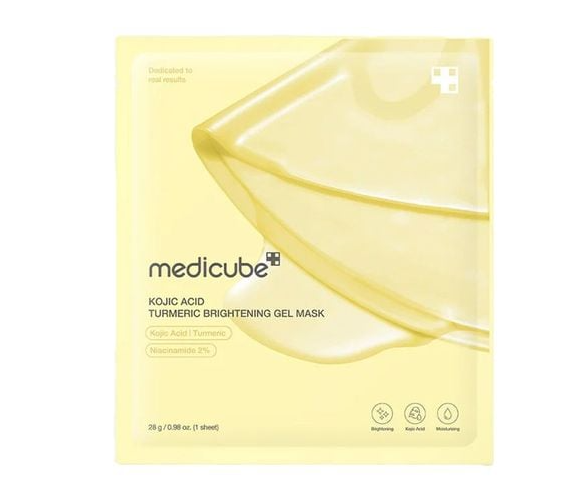 Гідрогелева маска для обличчя MEDICUBE yellow kojic acid turmeric brightening gel mask створена для освітлення та відновлення шкіри, а також для ефекту сяючої шкіри вже після першого застосування. Маска усуває тьмяність і вирівнює тон шкіри, бореться з темними плямами та слідами постакне, при цьому забезпечує інтенсивне зволоження та насичує шкіру вологою на 24 години. Унікальна гелева текстура, що змінює колір маски під час процедури на прозорий, щільно прилягає до обличчя, забезпечуючи глибоке зволоження та комфорт. Койєва кислота зменшує пігментацію та сліди пост-акне, освітлює темні плями. Куркума заспокоює, додає сяйва, бореться з нерівним тоном шкіри. Ніацинамід вирівнює текстуру і зменшує почервоніння, покращує рівень зволоження. Гідролізований колаген підвищує еластичність та пружність шкіри, наповнює шкіру вологою. Маска підходить для всіх типів шкіри.