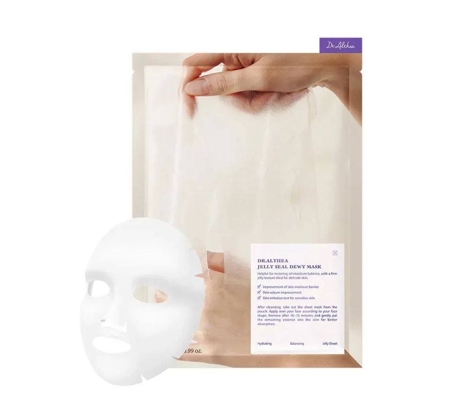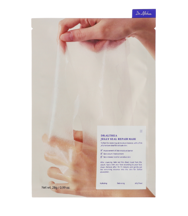 DR. ALTHEA mask sheet (jelly seal dewy) – це тканева маска, що створена для зневодненої та подразненої шкіри. Маска забезпечує швидке відновлення гідро-ліпідного бар’єру. Її щільна, але ніжна желеподібна текстура забезпечує максимальне поглинання активних інгредієнтів без подразнення, що робить її ідеальною для чутливої та комбінованої шкіри. Містить полінуклеотиди (PDRN) рослинного походження для покращення регенерації клітин шкіри. 10 молекул гіалуронової кислоти забезпечують глибоке зволоження, заспокійливий ефект гарантує пантенол та мадекасосид. Маска підходить для всіх типів шкіри, в тому числі і для чутливої.