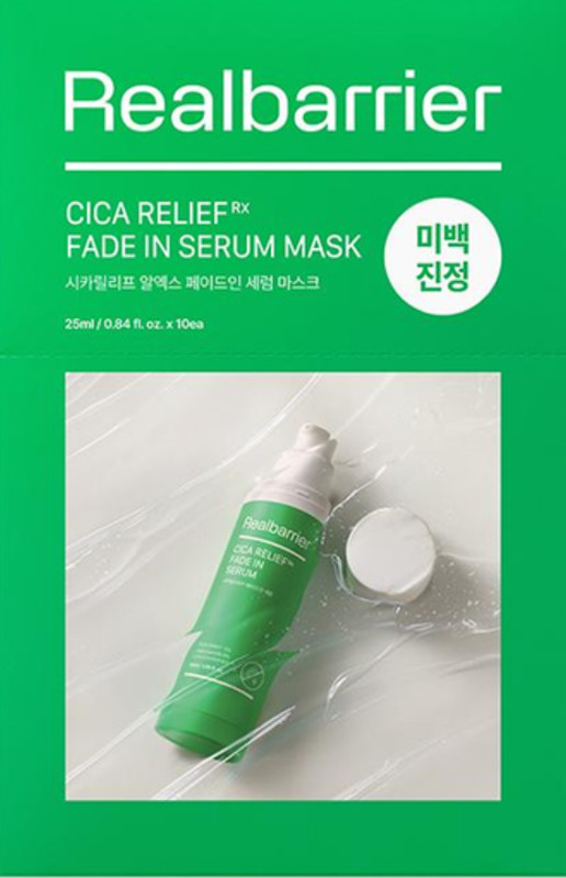 Real Barrier Clarelief Rx Fade In Serum Mask - ця тканинна маска заспокоює, допомагає шкірі відновитися та захистити її від зовнішніх подразників, зволожує обличчя, усуває почервоніння та сприяє загоєнню запалень. У складі маски міститься комплекс заспокійливих, відновлювальних та захисних компонентів, ідеальних для зневодненої та чутливої шкіри. Засіб має охолоджувальну дію і сприя відновленню шкіри після косметологічних процедур або надмірного впливу ультрафіолету.