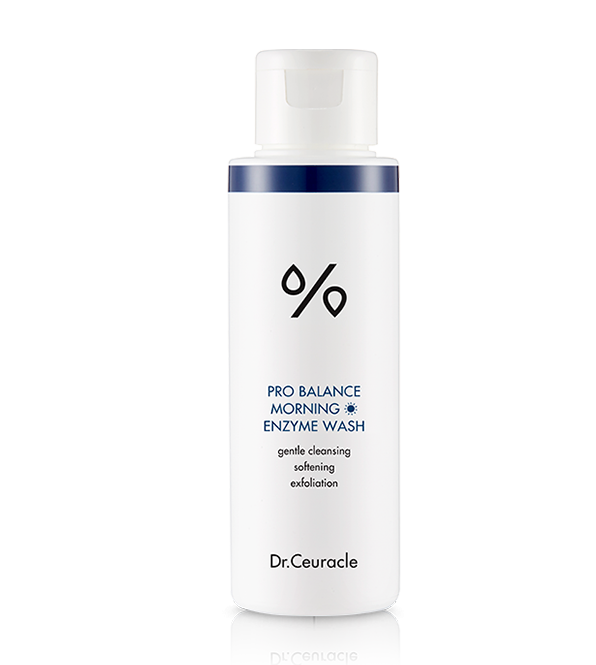 DR. CEURACLE pro balance enzyme wash morning – це ензимна пудра для делікатного відлущення та очищення обличчя. При контакті з водою пудра перетворюється в густу піну, яка сприяє видаленню як відмерлих клітин, так і глибоких забруднень. Засіб забезпечує гладкість і здоровий колір обличчя, не травмуючи шкіру. Завдяки вмісту пробіотиків у складі засіб підтримує нормальну мікрофлору шкіри, відновлює захисний шар шкіри. Підійде для усіх типів шкіри, включаючи чутливу. Активні компоненти: Мальтоза – ефективний зволожувач, робить шкіру гладкою та забезпечує здоровий колір обличчя. Кукурудзяний крохмаль містить ензими амінокислот, які м’яко видаляють омертвілі клітини шкіри та себум. Унікальний комплекс із 5 видів пробіотиків – зміцнює природну бар’єрну функцію шкіри та мікробіом, заспокоює запалення та свербіж. Фермент кефірного гриба (унікальна сполука молочнокислих бактерій та молочних дріжджів) – пригнічує зростання шкідливих мікроорганізмів, що викликають запалення. Олії апельсина, мандарину та літсею кубебу – підвищують гладкість і еластичність шкіри, тонізують і вирівнюють тон шкіри.