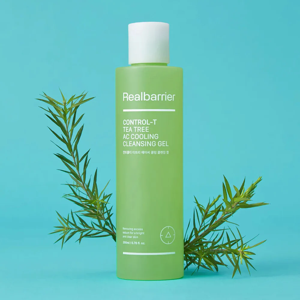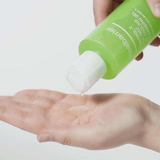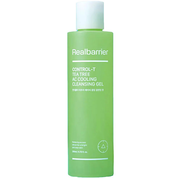 Гель для вмивання Real Barrier Control-T Tea Tree AC Cooling Cleansing Gel відмінно очищає, усуває бруд і працює на проблемній шкірі, зменшує виділення себуму та має охолоджуючу дію. Він клінічно протестований на здатність миттєво знижувати температуру шкіри на 3,6°C. Це надзвичайно важливо для проблемної шкіри, оскільки перегрів провокує активніше виділення себуму та посилює запальні процеси. Охолодження заспокоює подразнені ділянки вже на етапі вмивання.
