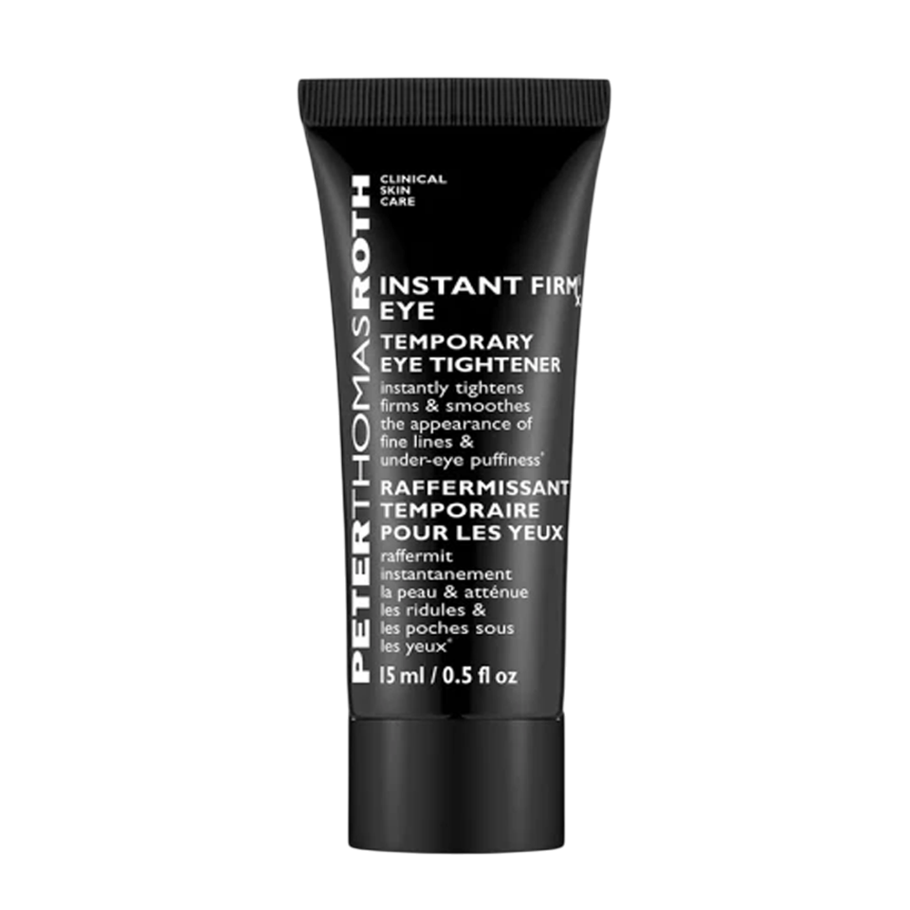 Крем під очі PETER THOMAS instant firmx eye temporary tightener – це швидкодіючий засіб для шкіри навколо очей, який забезпечує миттєві тимчасові результати з довготривалими антивіковими властивостями. Унікальна формула миттєво допомагає підтягнути, зміцнити та розгладити ніжну шкіру навколо очей, тимчасово зменшуючи появу гусячих лапок, дрібних зморшок, глибоких зморшок та набряків під очима. У клінічно виміряному дослідженні за участю 25 жінок віком від 36 до 65 років 100% користувачів відзначили покращення стану набряків під очима вже після 3 хвилин. Особливість полягає в поєднанні компонентів, які дають миттєвий ефект після нанесення, розгладжують та освітлюють (вирівнюють тон в зоні під очима). Ефект триває 4-6 годин. Продукт також протестований офтальмологами та безпечний для використання в зоні під очима. Продукт створений спеціально для нанесення вранці під макіяж і наноситься тільки на суху шкіру! Утворює плівку, яка підстягує шкіру і позбавляє від набряків, зменшує видимість заломів. Формула складається з наступних комплексів і компонентів: Firm-A-TiteTM – це комбінація з трьох силікатів та екстракту морських водоростей для підтягування шкіри. Комплекс забезпечує миттєвий тимчасовий ефект підтягування та зміцнення шкіри під очима. EyelissTM – потужний пептидний комплекс (Dipeptide-2, Palmitoyl Tetrapeptide-7), який помітно допомагає зменшити мішки під очима, набряки та зморшки з часом. Eye Regener® – поєднання екстракту люцерни та гідролізованого білка люпину, яке з часом впливає на мішки під очима, допомагаючи зменшити набряки та підтягнути шкіру. Похідна геспередину (Hesperidin Methyl Chalcone) зміцнює кровоносні судини, покращує мікроциркуляцію та усуває почервоніння.