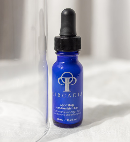 CIRCADIA spot stop – це заспокійлива сироватка для проблемної шкіри обличчя, яка спрямована на ефективне та безпечне лікування легкого та середнього ступеня акне. Spot Stop заспокоює шкіру, охолоджує її та зменшує запалення, почервоніння. Сироватка надає бактерицидну та протизапальну дію. Рослинні екстракти мають антимікробну дію, а камфора та ментол забезпечують миттєве покращення стану шкіри. Об’єм сироватки – 15 ml. Активні компоненти сироватки: Трикенол плюс – Поєднання терпіненолу-4 та екстракту верби містить похідні саліцилової кислоти і має антимікробні властивості. Це стандартизований рослинний комплекс розроблений як ефективний активний інгредієнт проти акне, отриманий з природних джерел. Комплекс виявляє себорегулюючу дію, зменшує подразнення та балансує мікробіом. Він пригнічує ріст небажаних мікроорганізмів, не впливаючи на корисні для шкіри бактерії. Екстракт канадського зніту – пригнічує пропіонову бактерію акне, зменшує утворення вільних радикалів та усуває почервоніння, яке було викликано хімічним та ультрафіолетовим пошкодженням. Екстракт є природним антиоксидантом. Він не тільки захищає шкіру від окислювального пошкодження, але й зберігає засіб від небажаних змін внаслідок окислення/хімічного розкладання/світла/вологи.Також, він заспокоює почервонілу чутливу шкіру та регулює вироблення шкірного себуму. QuenchT (Екстракти кола, гуарана та мате) – Похідні метилксантина рослинного походження, флавоноїди, таніни тари, сапоніни і глікозиди, які зменшують почервоніння, викликане впливом сонця, дискомфорт, печіння і свербіж, а також нейтралізують вплив вільних радикалів. Комплекс зменшує почуття поколювання та печіння, зменшує почервоніння, викликане перебуванням на сонці та протидіє впливу вільних радикалів. Алантоїн – пришвидшує оновлення епідермісу, загоює і відновлює бар’єрні властивостей епідермісу. У комплексі з іншими активними компонентами доглядових засобів, посилює регенерацію тканин, усуваючи при цьому лущення і сухість шкіри. Камфора і ментол – сприяють охолодженню шкіри. Екстракт коричневих морських водоростей – заспокоює подразнення і зменшує дискомфорт. Водорості мають антибактеріальні властивості та антиоксидантний ефект. Має зволожуючі та захисні властивості, стимулює мікроциркуляцію та сприяє вологоутриманню. Блокує зв’язок між меланоцитами та кератиноцитами, збільшує контрольовану ексфоліацію, допомагаючи видалити пігмент. Екстракт вівса – інгредієнт рослинного походження добре відомий своїми антиоксидантними та заспокійливими властивостями. Бета-глюкан вівса – імуностимулятор, який активує природний процес відновлення клітин. Бета-глюкан прискорює загоєння ран, порізів, подряпин, опіків, при цьому перешкоджаючи розвитку інфекційного процесу в ранах. Також він стимулює знищення на поверхні шкіри бактерій, грибків, відмерлих клітин.