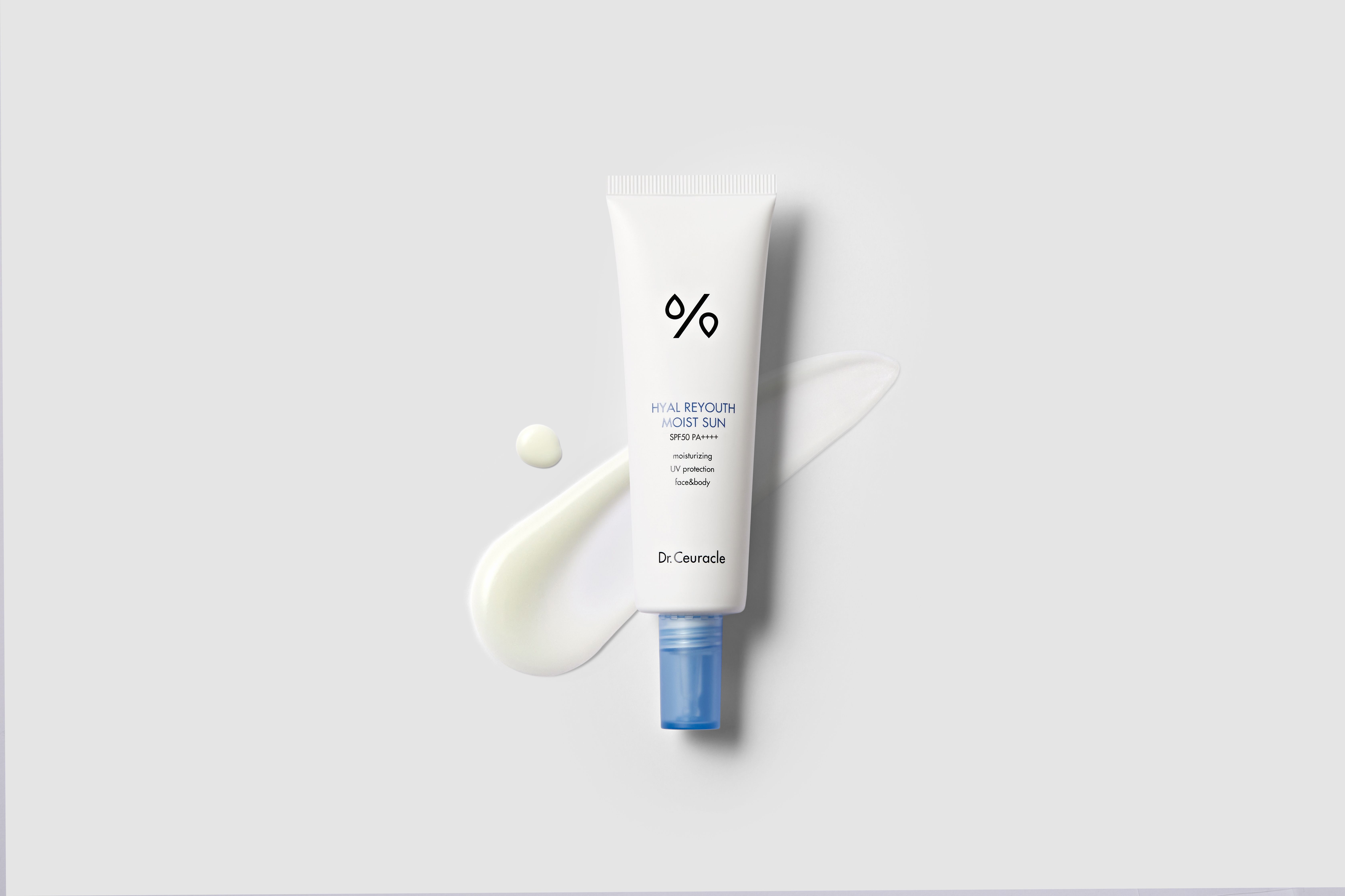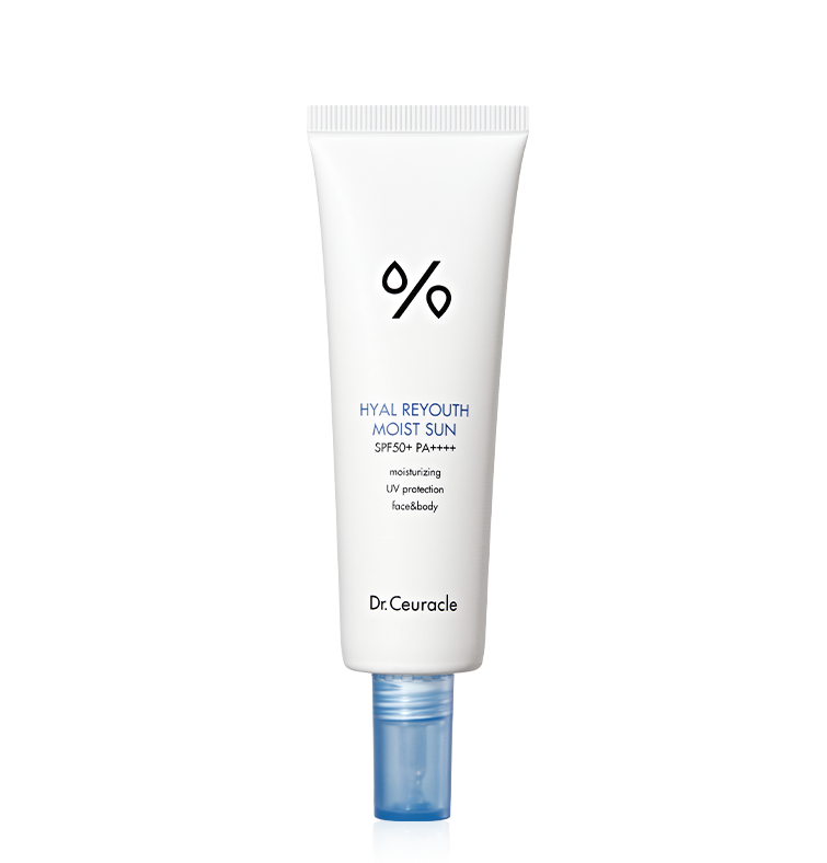 DR. CEURACLE hyal reyouth moist sun spf50+ – це сонцезахисний крем на основі 4-х хімічних фотостабільних фільтрах широкого спектру захисту. Засіб надає якісне зволоження, адже містить великий комплекс зволожуючих компонентів. Сонцезахист має легку текстуру емульсії та залишає сяючий фініш на обличчі. Сонцезахист підходить для всіх типів шкіри, в тому числі і чутливій. Захист від УФ випромінювання забезпечують хімічні фільтри нового покоління: Ethylhexyl Triazone (Uvinul T 150) Terephthalylidene Dicamphor Sulfonic Acid (Mexoryl SX) Diethylamino Hydroxybenzoyl Hexyl Benzoate (Uvinul A Plus) Bis-Ethylhexyloxyphenol Methoxyphenyl Triazine (Tinosorb S) Інші корисні інгредієнти: Комплекс з 10-ти видів гіалуронових кислот (500ppm) з різною молекулярною масою – забезпечують глибоке та пролонговане зволоження шкіри, підтримуючи оптимальний рівень вологи в шкірі, попереджаючи її зневоднення. Пантенол (провітамін B5) – природний зволожувач дерми, допомагає клітинам утримувати високий рівень вологи тривалий час, стабілізує та посилює бар’єрну функцію шкіри, захищає шкіру від дії вільних радикалів, заспокоює та пом’якшує шкіру. Фруктан— надає зволожуючу та протизапальну дії, покращує бар’єрну функцію шкіри. Ніацинамід – має освітлюючу дію, зменшує трансепідермальну втрату вологи, покращує бар’єрну функцію шкіри, сприяє збільшенню вироблення колагену і запобігає окислювальному стресу. Токоферол – запобігає окисленню продукту, пом’якшує шкіру і здійснює захист ліпідного балансу. Аденозин – впливає на синтез колагену та еластину клітин.