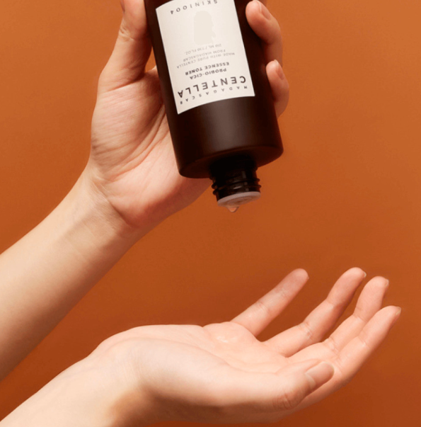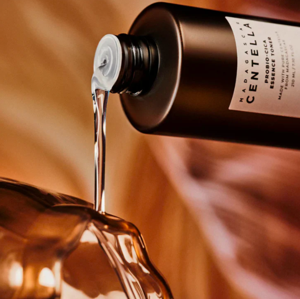 Тонер SKIN1004 madagascar centella probio-cica essence toner - насичена тонер-есенція з ферментованим екстрактом центели, гіалуроновою кислотою та церамідами для заспокоєння та зволоження сухої, нормальної та комбінованої шкіри. Тонер має легку водянисту текстуру.