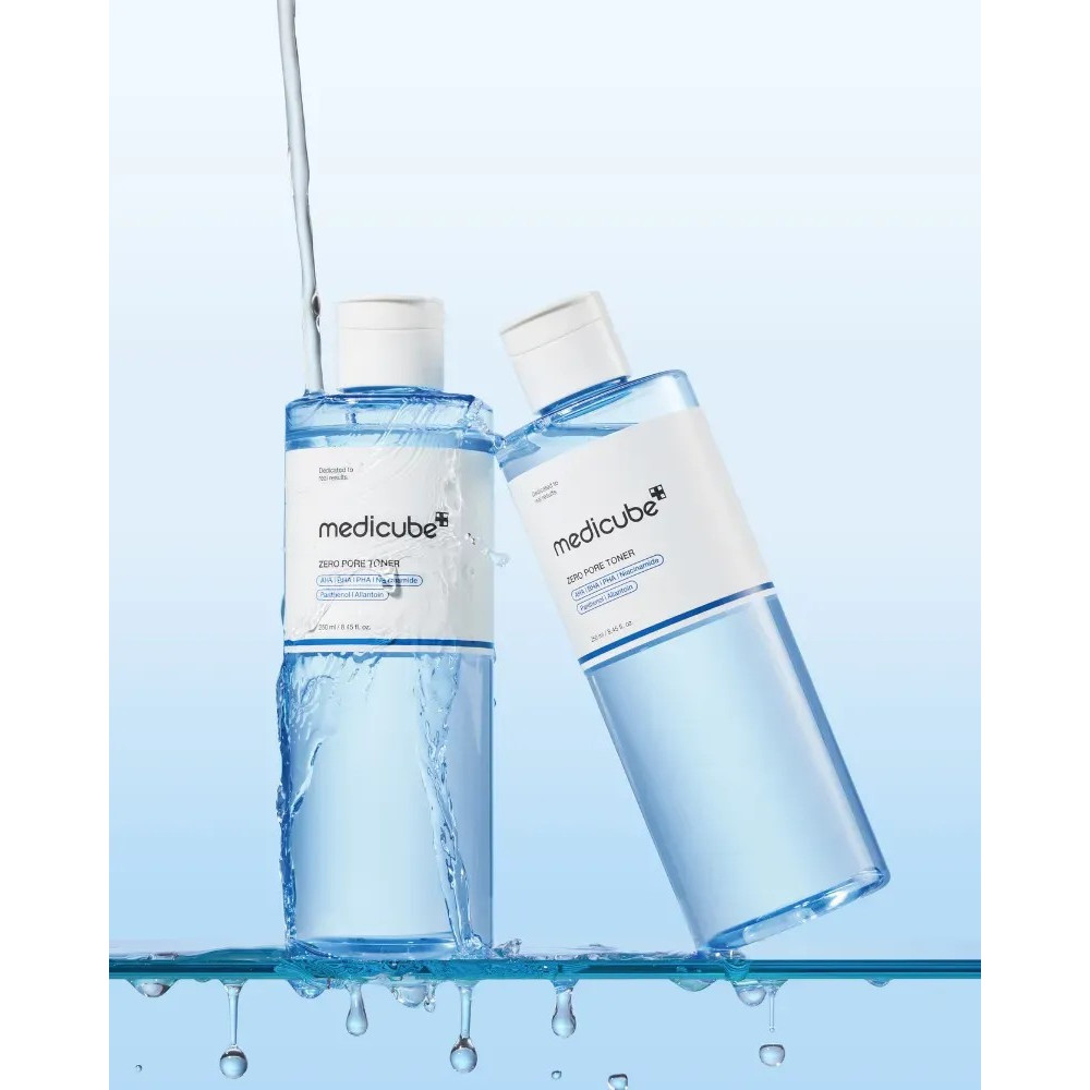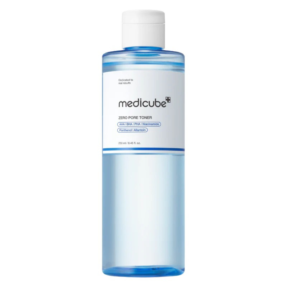 Зволожуючий тонер Medicube Zero Pore Toner – це засіб, розроблений для корекції проблеми розширених пір та нерівного тону шкіри. Завдяки збагаченій формулі з активними інгредієнтами, такими як ніацинамід, пантенол та рослинні екстракти, цей тонік візуально зменшує видимість пір, заспокоює шкіру та допомагає зберігати її зволоженою. А завдяки глюконолактону та гідролізованій гіалуроновій кислоті він інтенсивно зволожує шкіру та покращує її текстуру. Тонер зменшує видимість пір і вирівнює текстуру шкіри, забезпечує зволоження та живлення шкіри, заспокоює та освіжає завдяки рослинним екстрактам, надає антибактеріальний ефект, що допомагає знизити запалення. Тонер найкраще підходить для шкіри схильної до жирності (себопрофіцитної та комбінованої), в тому числі і чутливої. Активні компоненти: ніацинамід – покращує тон та текстуру шкіри, працює на себорегуляцію та зменшує видимість пор, зменшує почервоніння. гіалуронова кислота – інтенсивно зволожує та підтримує баланс вологи в шкірі. пантенол – заспокоює та знижує запалення. екстракти вишні, вересу і кори верби – мають протизапальні властивості і допомагають у боротьбі з акне висипаннями. аденозин – покращує регенерацію шкіри та надає їй пружність; екстракт лимонної шкірки – має освітлювальну дію і допомагає боротися з тьмяністю шкіри.