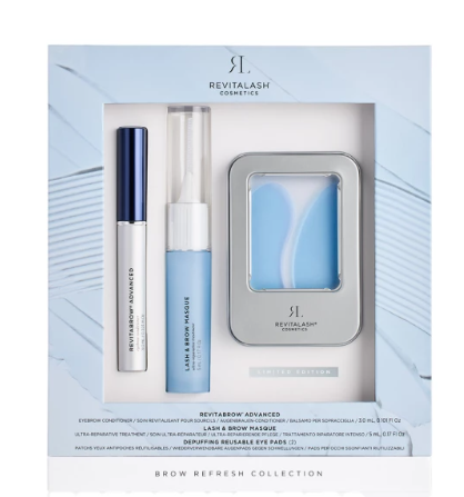 Лімітований набір з двома повнорозмірними засобами — сироваткою для брів RevitaBrow® Advanced та зволожувальною маскою для вій і брів. Унікальність набору — багаторазові патчі під очі, які знімають набряклість і заспокоюють шкіру навколо очей. Набір включає: Сироватка-кондиціонер для брів REVITABROW ADVANCED – (3 мл) Маска для глибокого живлення вій та брів LASH & BROW MASQUE – (5 мл) Патчі під очі DEPUFFING REUSABLE EYE PADS Сироватка – кондиціонер для брів REVITABROW® ADVANCED: оригінальний, створений офтальмологом кондиціонер для брів бореться з ознаками старіння та екологічного й хімічного стресу. Відновлює здоров’я, природну красу та виразність брів. Маска для вій та брів LASH & BROW MASQUE: в цій неповторній унікальній формулі поєдналися передові технології: кожна крапля продукту насичена надзвичайно потужними інгредієнтами, які живлять, відновлюють та оздоровлюють вії й брови, забезпечують глибоку гідратацію та сприяють здоровому сяйву, еластичності й міцності кожного волоска вій та брів. Патчі під очі DEPUFFING REUSABLE EYE PADS: це багаторазові патчі під очі, їх можна використовувати можна разом із кремом або сироваткою для зони навколо очей, або використовувати їх окремо як самостійний засіб.