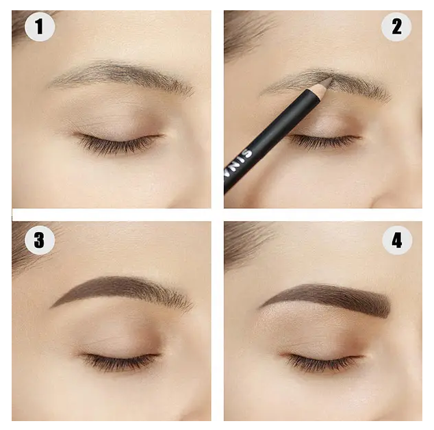 Прочешіть брови, починайте фарбувати з основи перенісся, малюючи легкі штрихи, і закінчуйте кінчиком брови, рухаючись за ростом волосків.