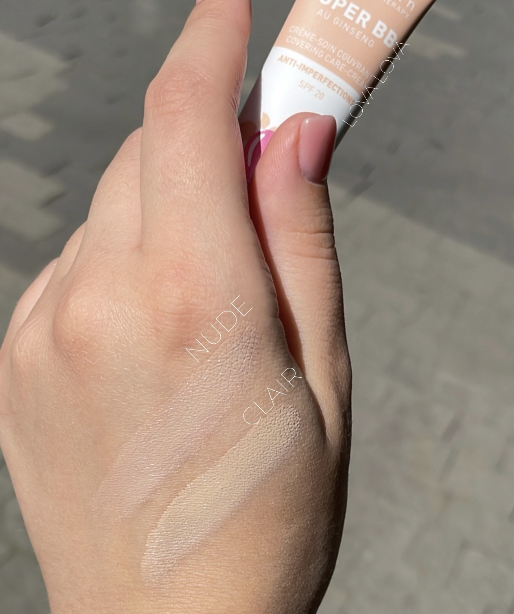 SUPER BB бездоганно маскує недосконалісті, почервоніння та пігментні плями шкіри. Крем має високий рівень покриття, приємний на дотик та при нанесенні, натуральність ефекту.nnЕфективна формула містить інгредієнти, які допомагають боротися з акне та запальними процесами, покращує еластичність шкіри та розгладжує тонкі зморшки. BB крем підходить для всіх типів шкіри. Основні інгредієнти: – Комплекс білого женьшеню – антиоксидант, запобігає віковим змінам, зволожує, заспокоює, зміцнює бар’єрну функцію шкіри. – Екстракти кореня та квітів женьшеню, кореня солодки, кореня дикого ямсу, плодів кігелії, хвоща. – Ніацинамід: зменшує пігментацію. – Олія насіння жожоба: запобігає зневоднення, живить та пом’якшує шкіру.