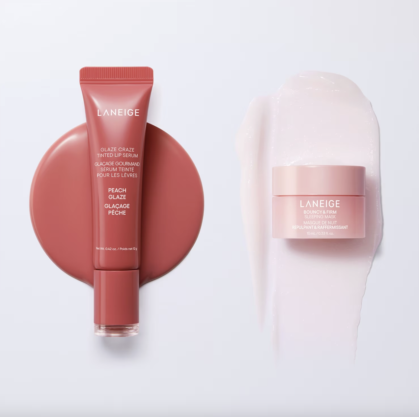Glazed and bouncy drumbeat set Lip peach glaze and sleeping mask