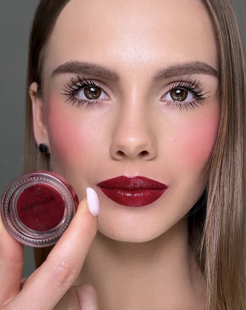 Нанеси помаду за допомогою подушечки пальця. Від тепла тіла натуральні воски та батери стають більш пластичними та піддатливими. Спершу нанеси засіб на губи, а залишки з пальця розподіли на повіки та щічки. Змінюй інтенсивність нанесення помади, від легкого тінту до яскраво вираженого відтінку, нашаруванням.