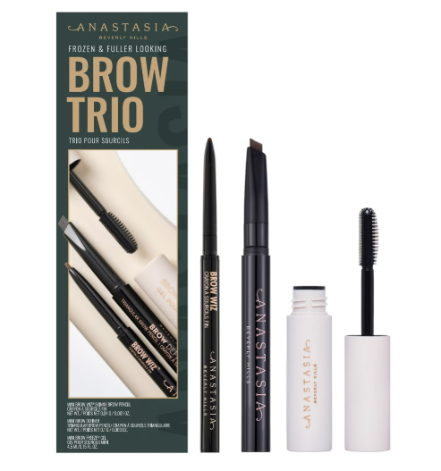 Набір для брів від бренду Anastasia Beverly Hills включає в себе три мініатюри продуктів для створення ідеального макіяжу брів. Він містить 2 олівці: Deluxe Mini Brow Definer 0.1 ml, та Deluxe Mini Brow Wiz 0.04 ml. І гель для фіксації брів Deluxe Mini Brow Freeze Gel 4.5 mL. Brow Definer – олівець для створення ідеальних брів. Він має трикутну форму, що дозволяє як промальовувати окремі волоски, так і заповнювати брови. Щіточка з іншої сторони допомагає розтушовувати олівчик для отримання натурального ефекту. Розроблений на восковій основі, тому легко наноситься, тушується та не розтікається протягом дня. Brow Wiz – ультратонкий механічний олівець для створення форми та об’єму брів, природного та доглянутого вигляду кожної волосинки. Олівець ідеально підходить для заповнення прогалин або дофарбовування волосків. Brow Freeze Gel – прозорий гель для брів силної фіксації, формула є водостійкою та надійно триматиме брови протягом дня. Силіконова двостороння щіточка надійно захоплює кожну волосинку та ретельно вкладає їх.