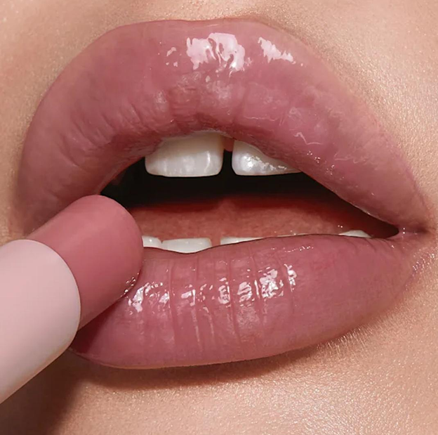 Нанесіть Lip Cheat уздовж зовнішнього краю контуру губ, щоб надати їм бажаної форми та об’єму, потім зафарбуйте всю поверхню для стійкого ефекту. Проведіть Crystal Happikiss по губах, як зволожувальним бальзамом, щоб надати їм легкого сяйва. Використайте аплікатор у формі сердечка з Collagen Lip Bath, щоб нанести блиск і створити дзеркальний ефект на губах. Нанесіть Pillow Talk Beauty Light Wand на яблучка щік за допомогою подушкоподібного аплікатора, потім розтушуйте круговими рухами вгору за допомогою пензля.