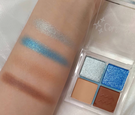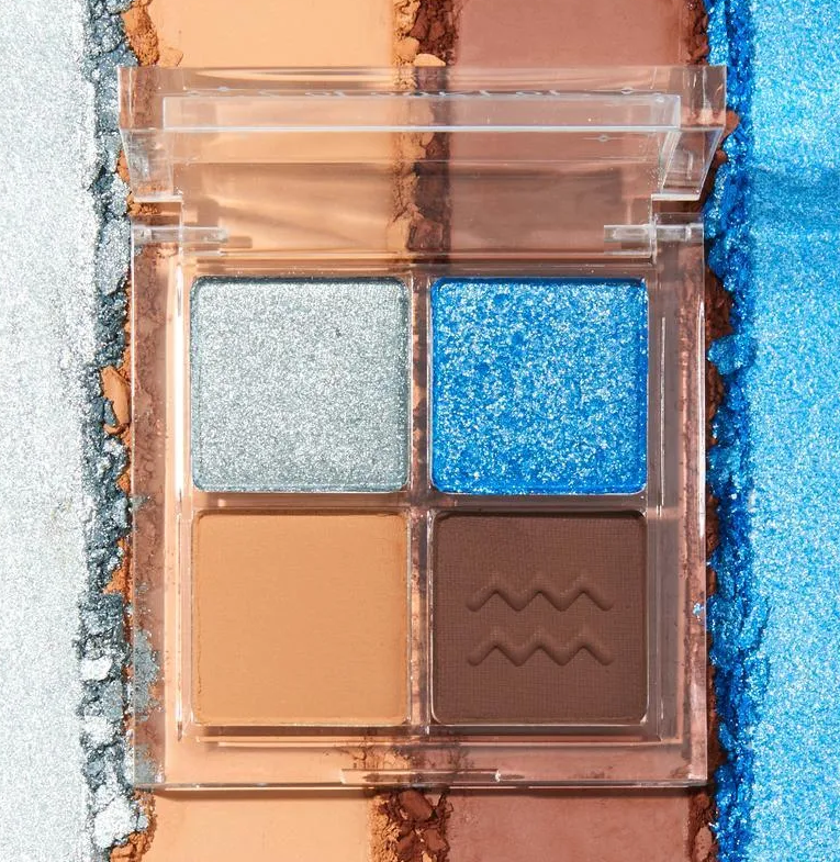 Colourpop Crystal Clear Aquarius – це лімітована палітра бренду, яка поєднує чотири відтінки: два з яких із матовим фінішем та два у фініші металік. З нею можна робити як легкі денні макіяжі, так і насичені, використовуючи акцентні відтінки. Тіні пігментовані та комфортні в нанесені і розтушуванні.