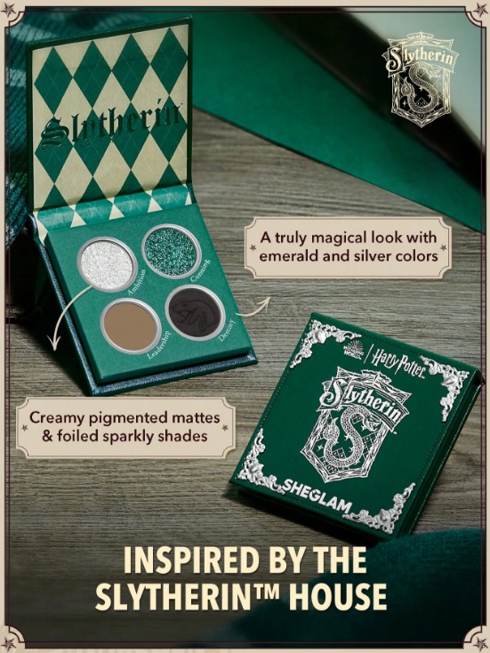 Додайте трішки магії до своєї бʼюті-колекції. Натхненна смарагдовими та сріблястими відтінками факультету Слизерин, ця палетка поєднує м'які матові та сяючі фініші, створюючи справді чарівний образ - виразний, впевнений, з характером.