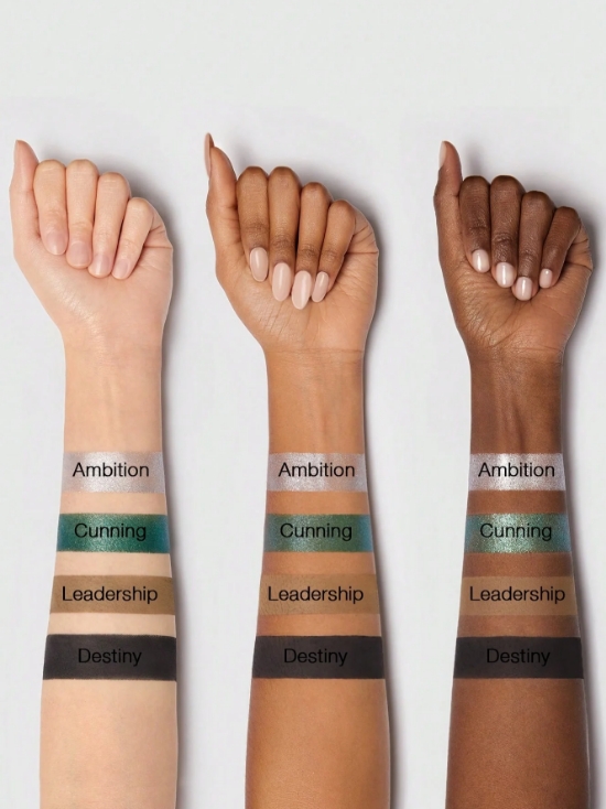 Ambition:Isononyl Isononanoate, Calcium Aluminum Borosilicate, Calcium Titanium Borosilicate, Triethylhexanoin, Magnesium Myristate, Synthetic Wax, Synthetic Fluorphlogopite, Mica, Caprylic/Capric Triglyceride, Stearalkonium Hectorite, Phenoxyethanol, Caprylyl Glycol, Tin Oxide, Propylene Carbonate, Tocopheryl Acetate, Ethylhexylglycerin, Titanium Dioxide(Ci 77891), Iron Oxides(Ci 77499) Cunning:Dimethicone, Synthetic Fluorphlogopite, Calcium Sodium Borosilicate, Calcium Aluminum Borosilicate, Diisostearyl Malate, Caprylic/Capric Triglyceride, Mica, Trimethylsiloxysilicate, Magnesium Myristate, Synthetic Wax, Ethylhexylglycerin, Phenoxyethanol, Tin Oxide, Tocopheryl Acetate, Caprylyl Glycol, Titanium Dioxide(Ci 77891), Blue 1 Lake(Ci 42090), Yellow 5 Lake(Ci 19140), Iron Oxides(Ci 77499) Leadership: Synthetic Fluorphlogopite, Silica, Synthetic Wax, Magnesium Myristate, Dimethicone, Polymethylsilsesquioxane, Trimethylsiloxysilicate, Phenoxyethanol, Dimethicone/Vinyl Dimethicone Crosspolymer, Caprylyl Glycol, Triethoxycaprylylsilane, Ethylhexylglycerin, Tocopheryl Acetate, Titanium Dioxide(Ci 77891), Iron Oxides(Ci 77491, Ci 77492, Ci 77499) Destiny: Synthetic Fluorphlogopite, Silica, Synthetic Wax, Polymethylsilsesquioxane, Dimethicone, Magnesium Myristate, Triethoxycaprylylsilane, Phenoxyethanol, Caprylyl Glycol, Tocopheryl Acetate, Trimethylsiloxysilicate, Ethylhexylglycerin, Dimethicone/Vinyl Dimethicone Crosspolymer, Iron Oxides(Ci 77499)