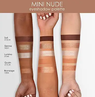 Палітра тіней Mini Nude Eyeshadow Palette надзвичайно витончена та універсальна. В неї входить 5 універсальних відтінків з матовими та сяючими фінішами, які прекрасно поєднуються між собою та підходитимуть як світлим так і темнішим відтінкам шкіри.