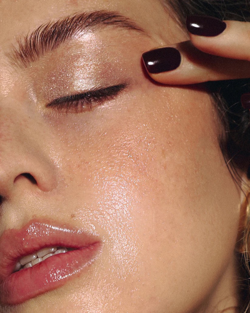 Нанесіть сяючий топер на повіки за допомогою пальця або пензлика. Для більш виразного сяйва повторіть нанесення.