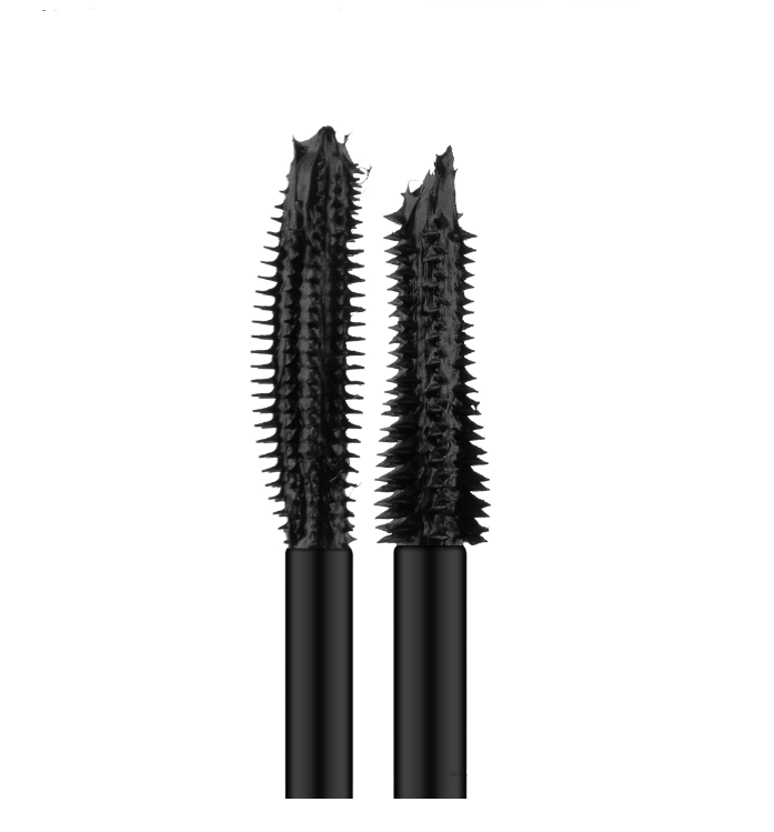 Дві щіточки, дві формули, одна туш! Забезпечує максимальний об’єм, красивий завиток та нейморну довжину, не обтяжуючи вії. Можна використовувати обдві щіточки одночасно або окремо. Сторона А відповідає за об’єм та створює його завдяки силіконовим щетинкам різної довжини, які огортають кожну війку пігментом. Сторона В забезпечує подовження та підкручення вій.