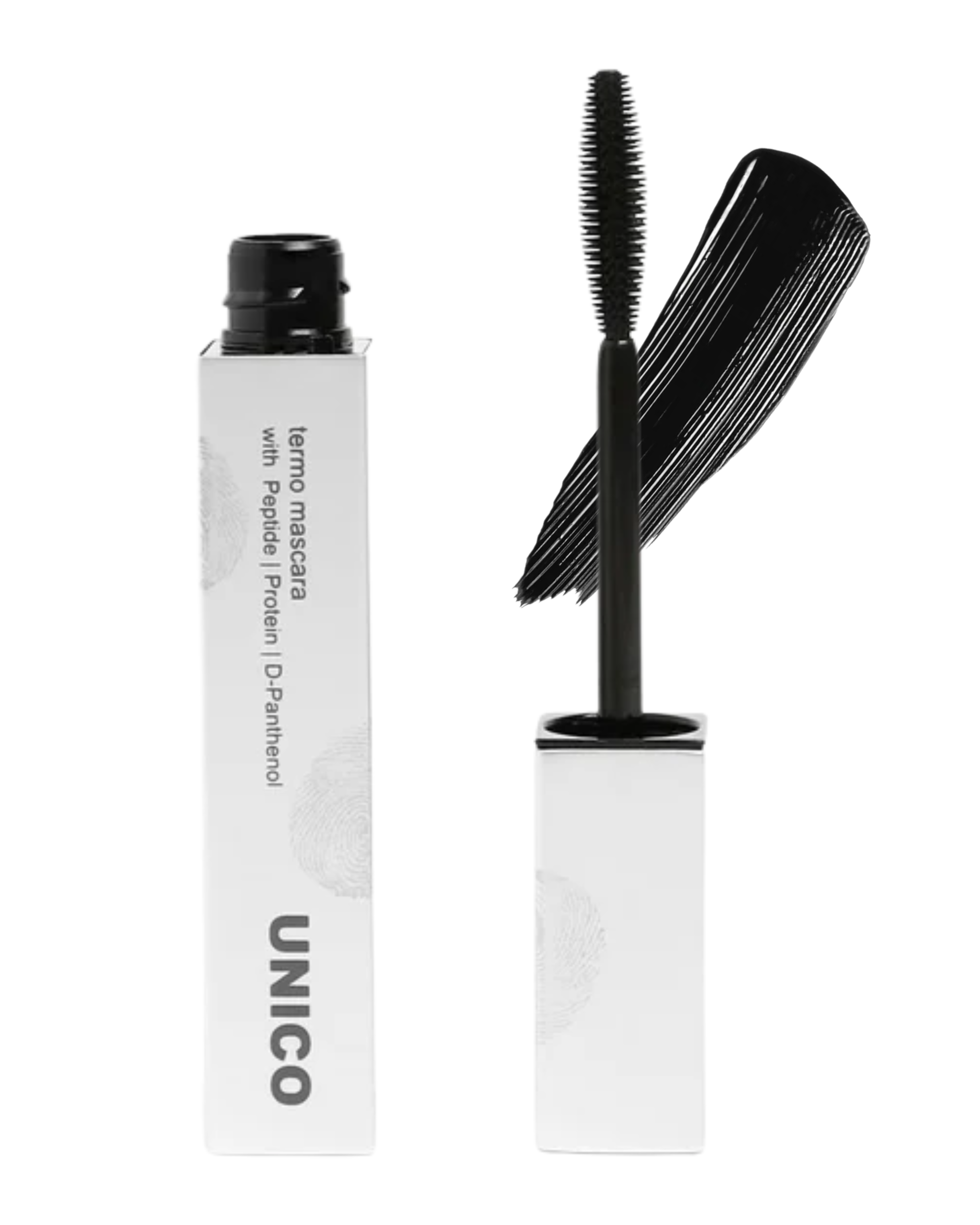 UNICO termo mascara with peptides – це термотуш — сироватка для вій, яка виконана за іноваційною технологією. Вона не лише фарбує, а й доглядає, роблячи вії еластичними та густими, не осипається та не розтікається, лишаючи темні кола під очима, але при цьому легко змивається теплою водою. Пептиди та рослинний протеїн у складі стимулюють ріст вій, пантенол відповідає за зволоження та зміцнення, а комплекс восків забезпечує текстуру та об’єм. Зручна силіконова щіточка з першого разу промальовує вії, видовжуючи їх та роблячи більш обʼємними, а її форма дозволяє легко промальовувати вії у кутиках, не лишаючи чорних слідів на обличчі. Маса — 10 грам Колір – насичений чорний. Активні компоненти: Пептиди — сприяють зміцненню вій, стимулюючи їх зростання. Рослинний протеїн — живить та захищає вії, роблячи їх більш здоровими та пружними. Пантенол (Провітамін B5) — заспокоює та зволожує вії, сприяє їх зміцненню та росту. Карнаубський Віск та Віск Бджолиний — додають текстуру та об’єм, допомагаючи формувати щільне покриття на віях.