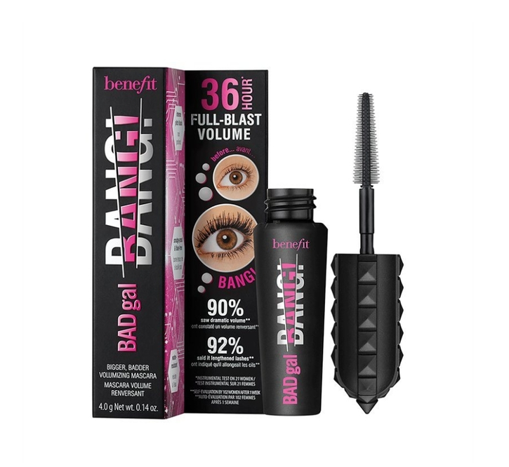 BENEFIT Badgal Bang Mascara – входить в лінійку культових продуктів від бренду Benefit. Туш створює неймовірне видовження вій без склеювання та обтяження. Силіконова конусоподібна щіточка промальовує кожну волосинку від кореня до кінчика, розділяє та надає об’єм. Легко нашаровується та робить погляд виразнішим. Продукт розформований з набору, тобто без індивідуального упакування. Об’єм: 4 мл