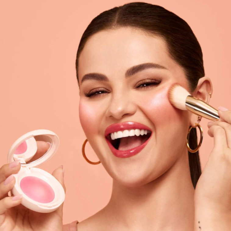 нанесіть 1-2 краплі рідких румян на щічки та розтушуйте за допомогою пензликами вбиваючими рухами.